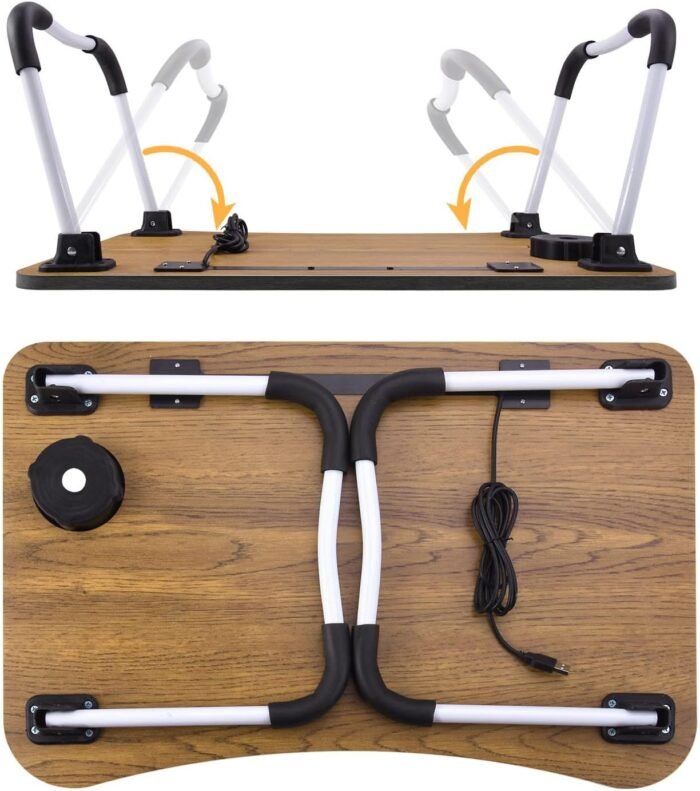 Customers find the lap desk worth the money and appreciate its portability, particularly for use on couches and beds. The color matches the product pictures, and they like the light and fan features. The build quality receives mixed feedback – while some find it sturdy, others note the legs are not stable. The size is also mixed, with some finding it spacious for notes while others say it’s too tall for comfortable laptop use. The USB ports and cup holder receive mixed reviews, with some reporting that the USB port doesn’t work and the cup holder being too shallow to be effective.