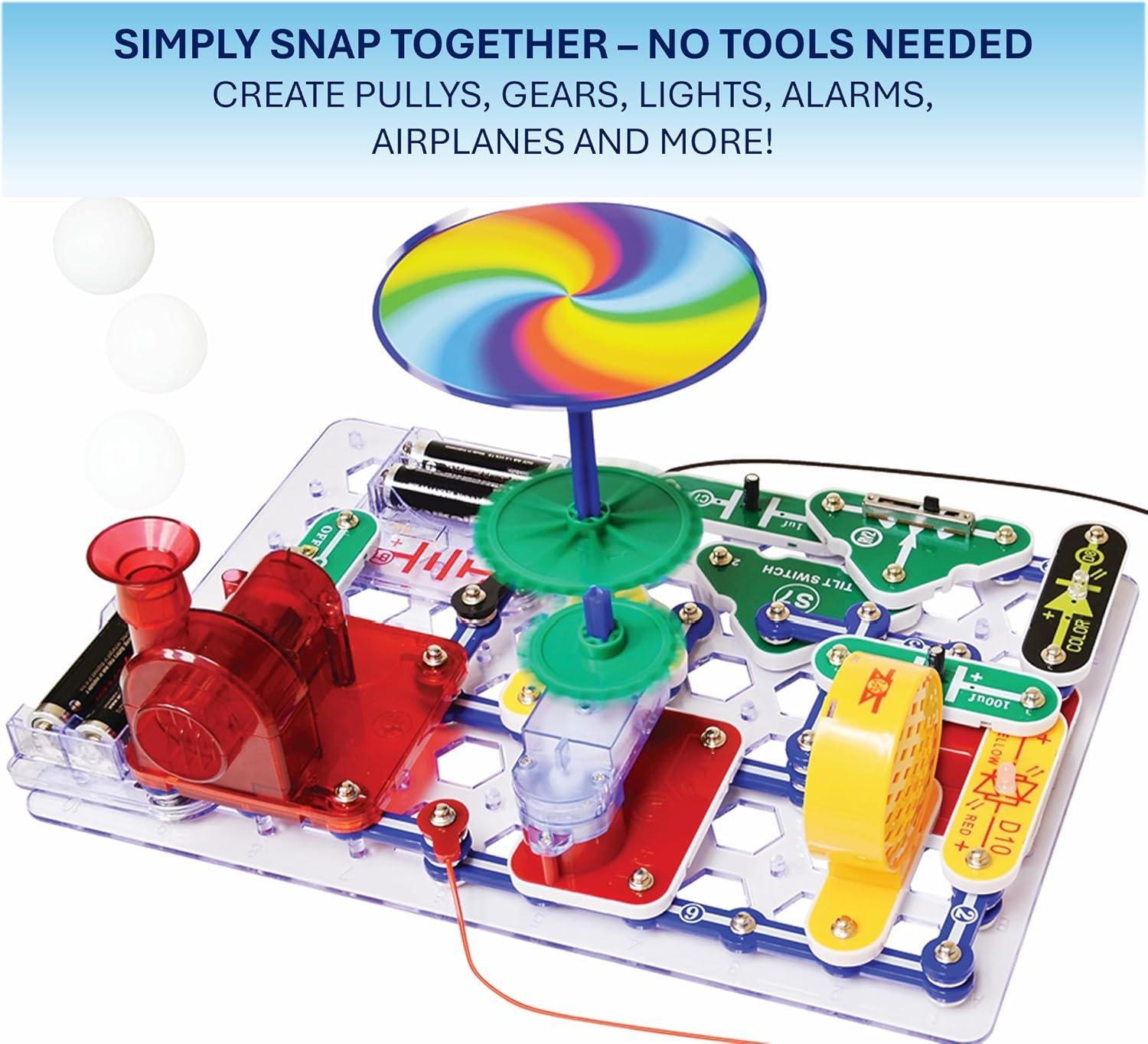 SO MANY TOYS IN A SNAP: Make dozens of cool electronic gadgets – all from one box! A safe and fun way to introduce children ages 8+ to the basics of electrical engineering! Build exciting projects and toys using the included colorful instruction book!