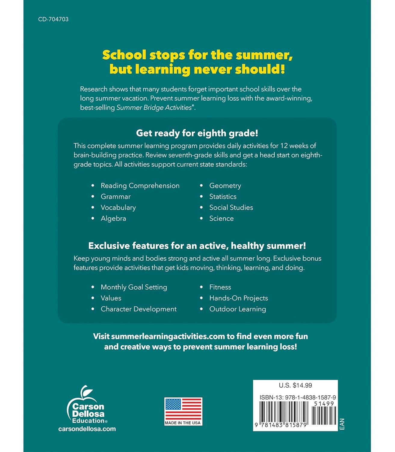 Summer Bridge Activities 160-page 8th grade workbooks all subjects help your child learn essential math, language arts, science, social studies, and fitness skills during summer break through quick 15-minute, active learning adventures.