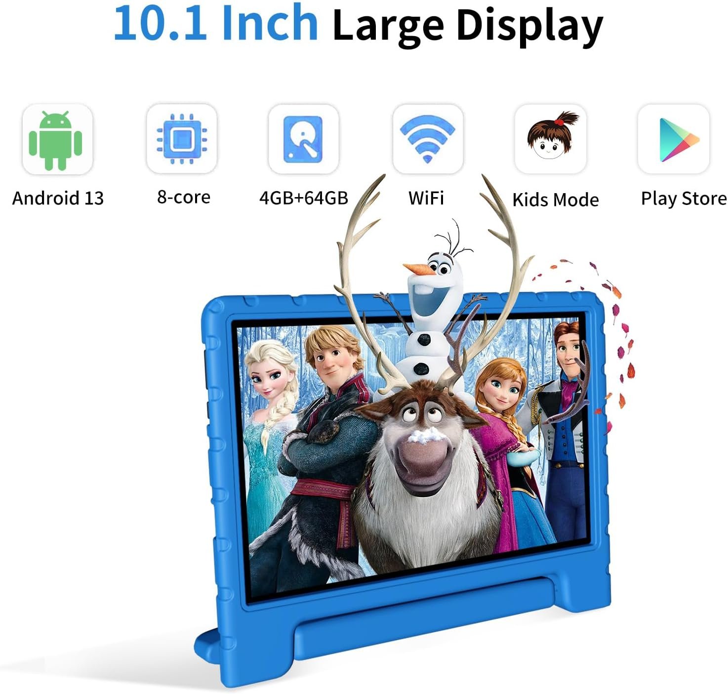 Tablet for Kids, 10 Inch Kids Tablet Android 13, 4GB+64GB, Octa-Core, WiFi 6, 12H Battery, Kids Space, Parental Control 1280 * 800 HD Display Blue
