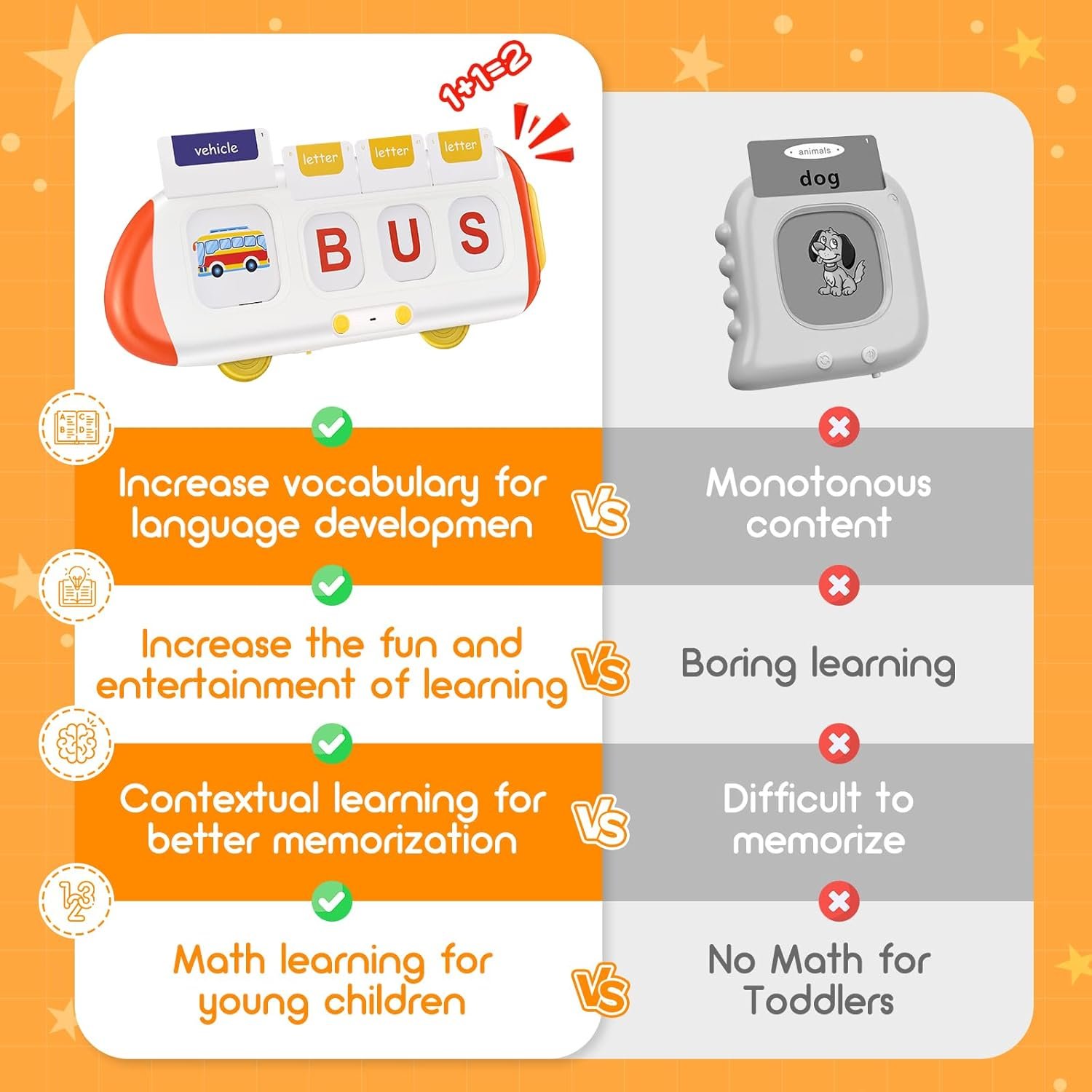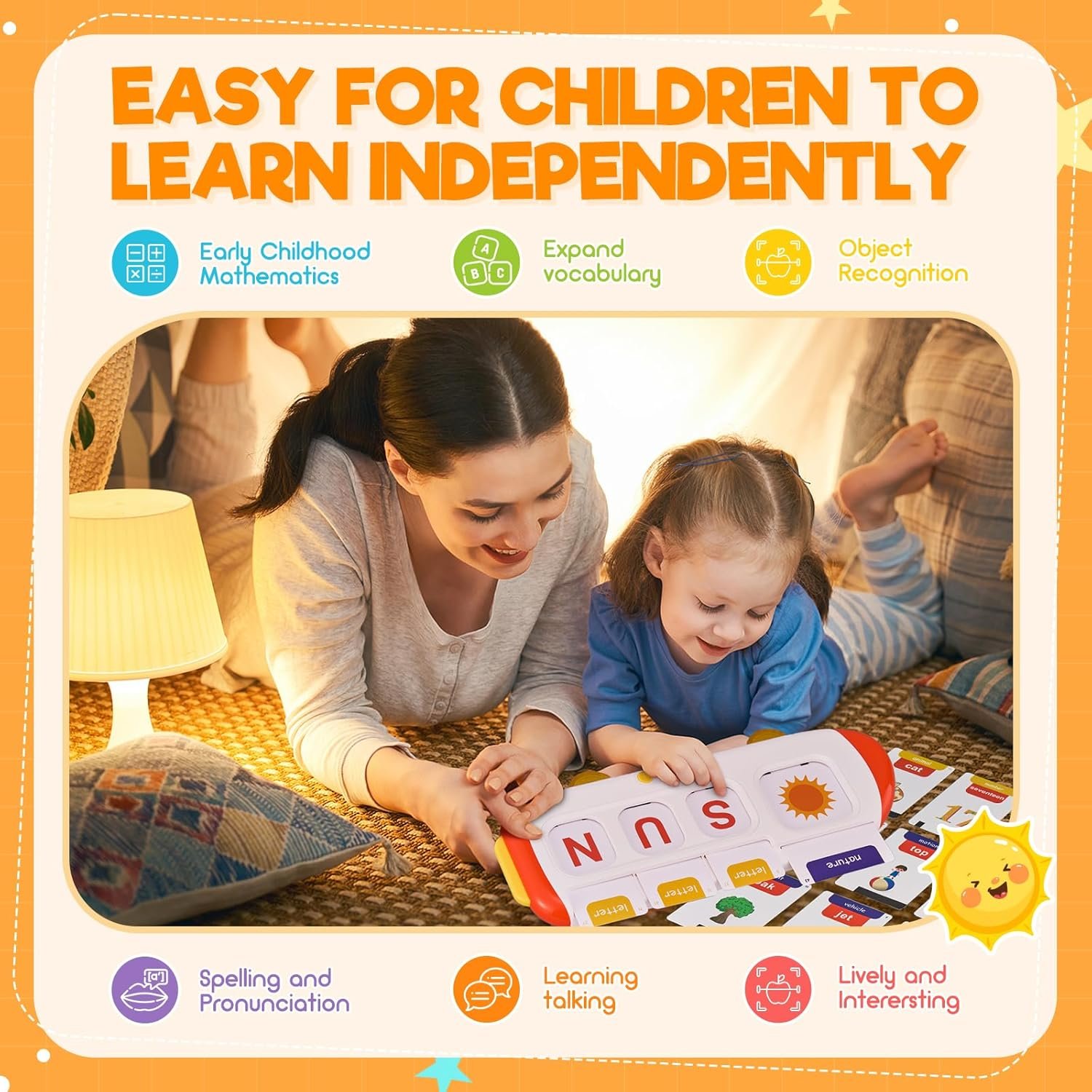 Spell-Check Fun Learning: Designed for curious minds aged 3-6, our talking flash cards bring words to life in a fun, interactive way. With vibrant images and clear pronunciation, toddlers explore vocabulary effortlessly. Whether mastering words like “BAG” or discovering new ones, instant feedback boosts confidence.Dive into a world of active learning and language development with our educational sensory toys.At the same time, it allows them to learn math.
