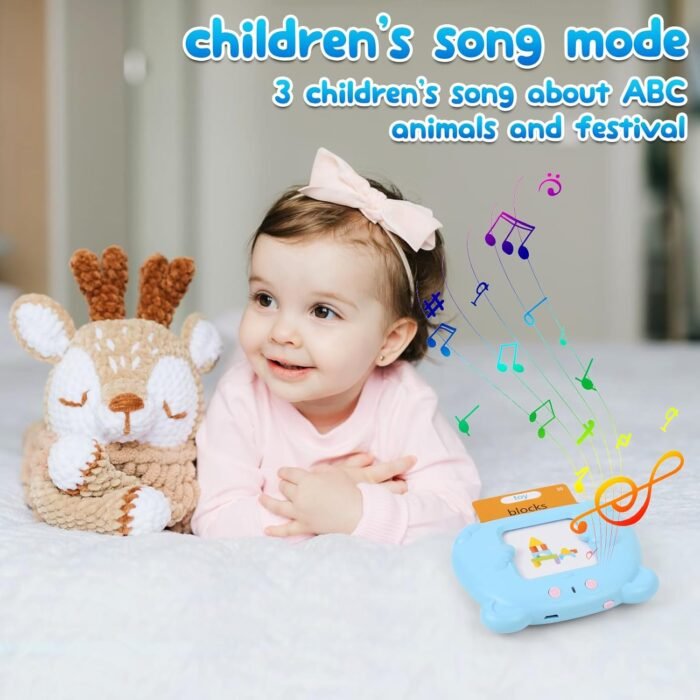 Toddler Talking Flash Cards with 255 Cards and 510 Words, Autism Sensory Toys, Speech Therapy, Montessori Toys, Learning Educational Gifts with Music for 3 4 5 6 Year Old Boys and Girls(Blue)