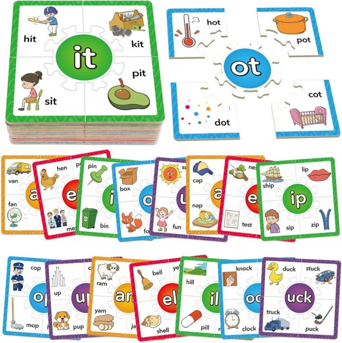 Torlam Phonics Puzzles Rhyming Games Phonics Games Flash Cards for Kids Toddler, Learn to Read Spelling Reading Sight Words, Short A E I O U Blends Site Words for Preschool Kindergarten Homeschool