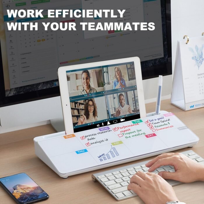 PERFECT DESIGN: Quickly record your weekly schedule-Sunday through Monday. Maximize your work area. The desktop weekly calendar whiteboard is designed to sit perfectly between a keyboard and monitor and is slope angled for comfortable reading and writing, or typing when you are using it as a keyboard stand.