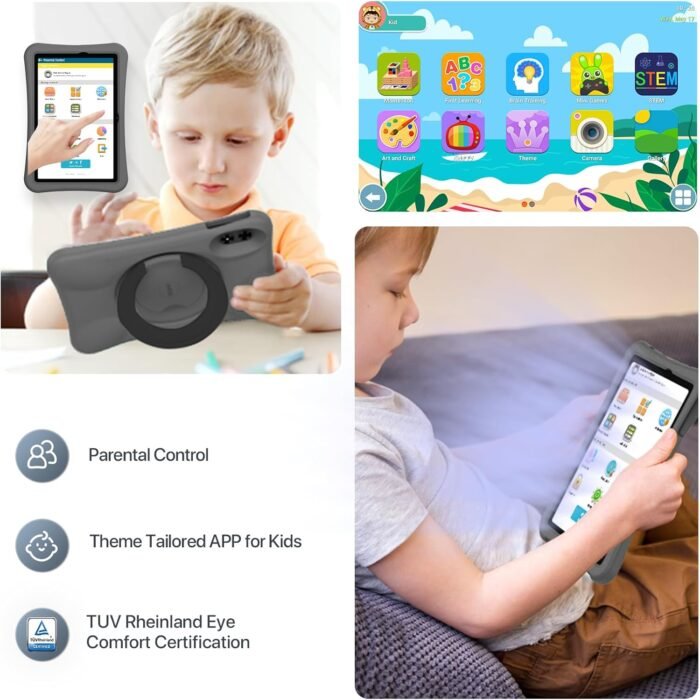 Parental Control Mode and Kid Oriented Theme: Learning tablet for kids age six to twelve with Parental Control to manage using time, streaming You Tube video; Kids Park App includes STEM, drawing,art, math, games, etc helps children to learn and play