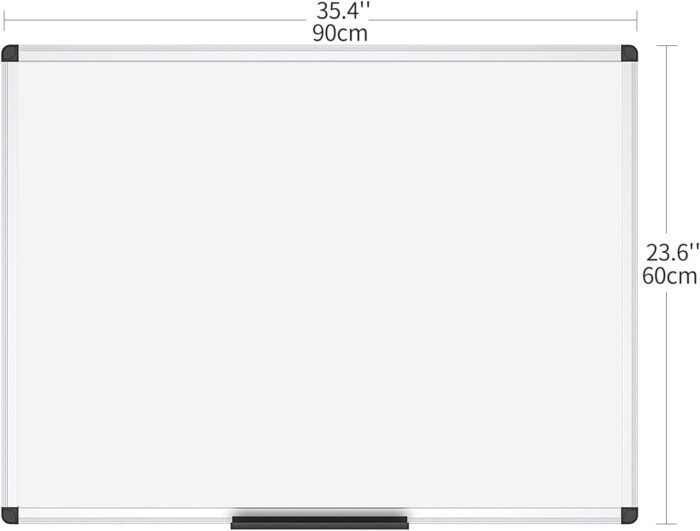 【Smooth Writing and Easy to Wipe】Magnetic whiteboard, overall size: 35.4″ x 23.6″ ( frame included); writing surface size: 34.0″ x 22.2″. Smooth & durable magnetic writing surface, easily dry wipe with all dry-erase markers. Give you a very smooth writing experience