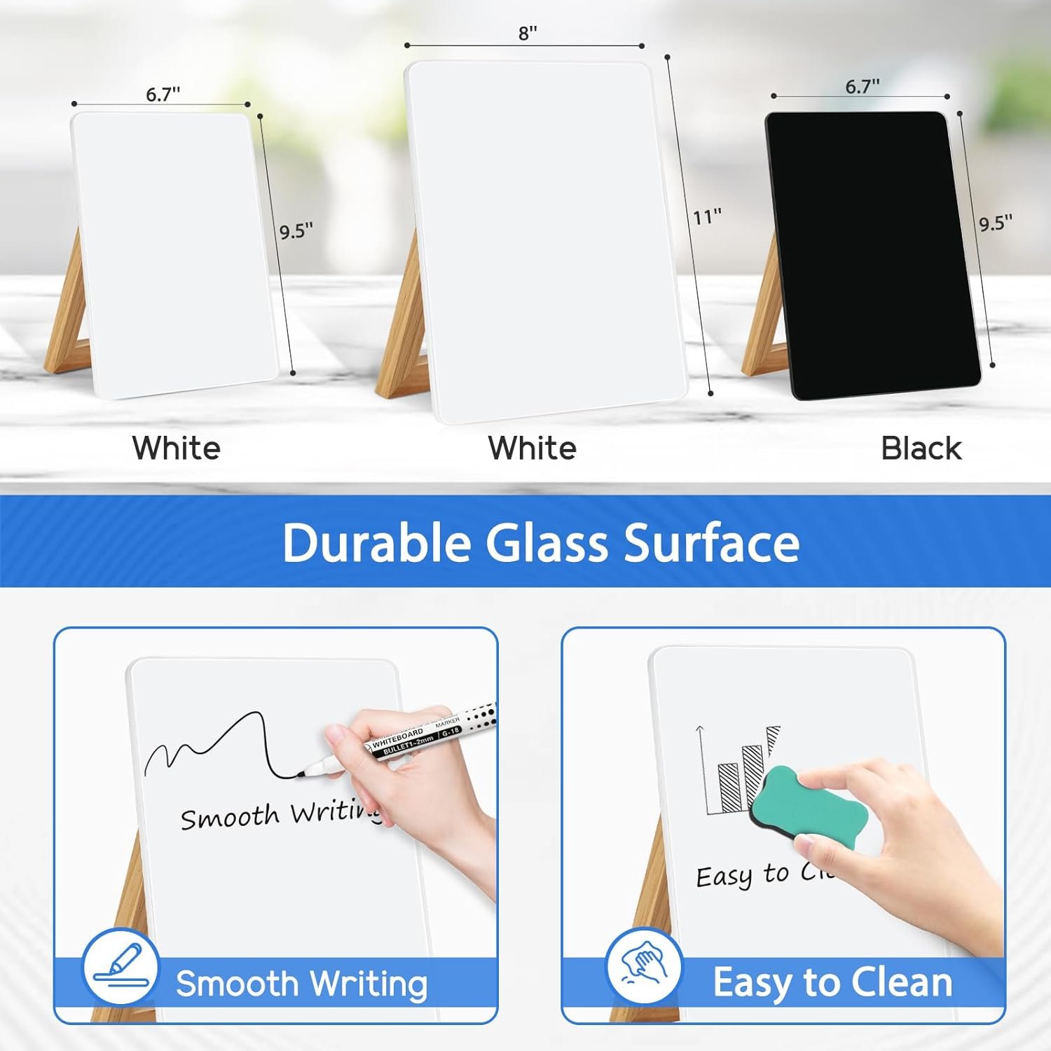 ✨【Easy Writing & Erasing】Our desktop glass board ensures easy writing and effortless wiping, the durable glass writing surface is high stain resistance and outstanding erasability, ldeally suited for frequent daily repeat use of takenotes,to do list, reminder, drawing and memos.