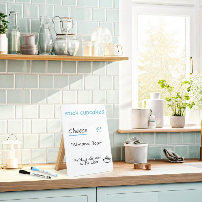 ✨【Smart & Portable】WALGLASS Desk White Board is compact and portable. The reversible wood stand offers the flexibility of a flat writing surface or a stand up on for easy viewing, adapting effortlessly to your needs. With its compact and portable size, this desk whiteboard is easy to carry and helps conserve usable desktop space.