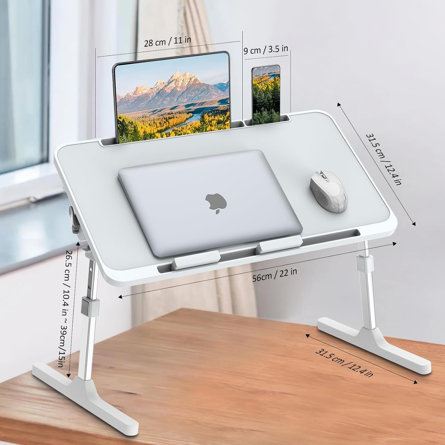 💦【Stable and Sturdy Laptop bed Tray】The laptop table tray is made of durable wood, which is long lifespan and not easy to break. The table legs are made of high-quality metal which It will not collapse and break.